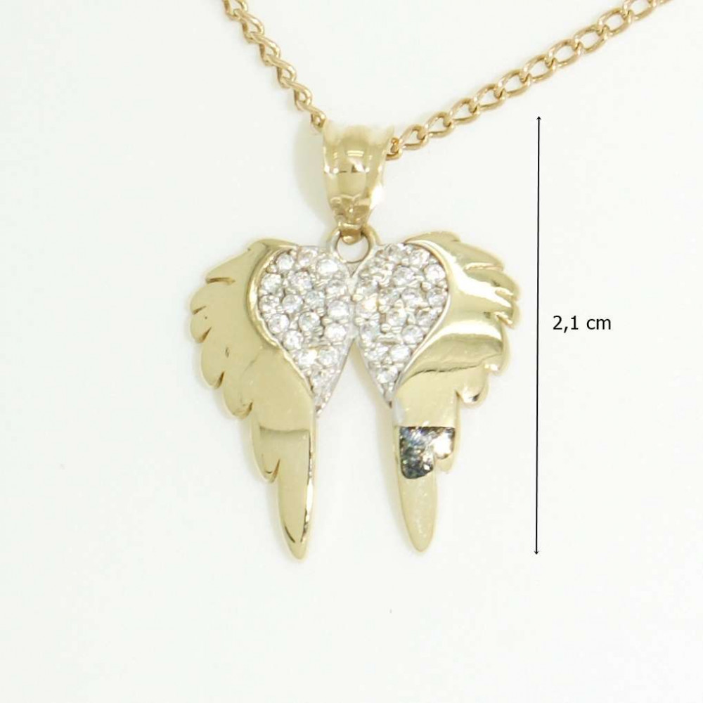 Magical angel wings made of 14-karat yellow gold. The sparkle is provided by 34 zirconia stones, which are placed in the upper third of the golden angel wings. The Angel Wing gold pendant with zirconia stones truly transforms your appearance into that of an angel.