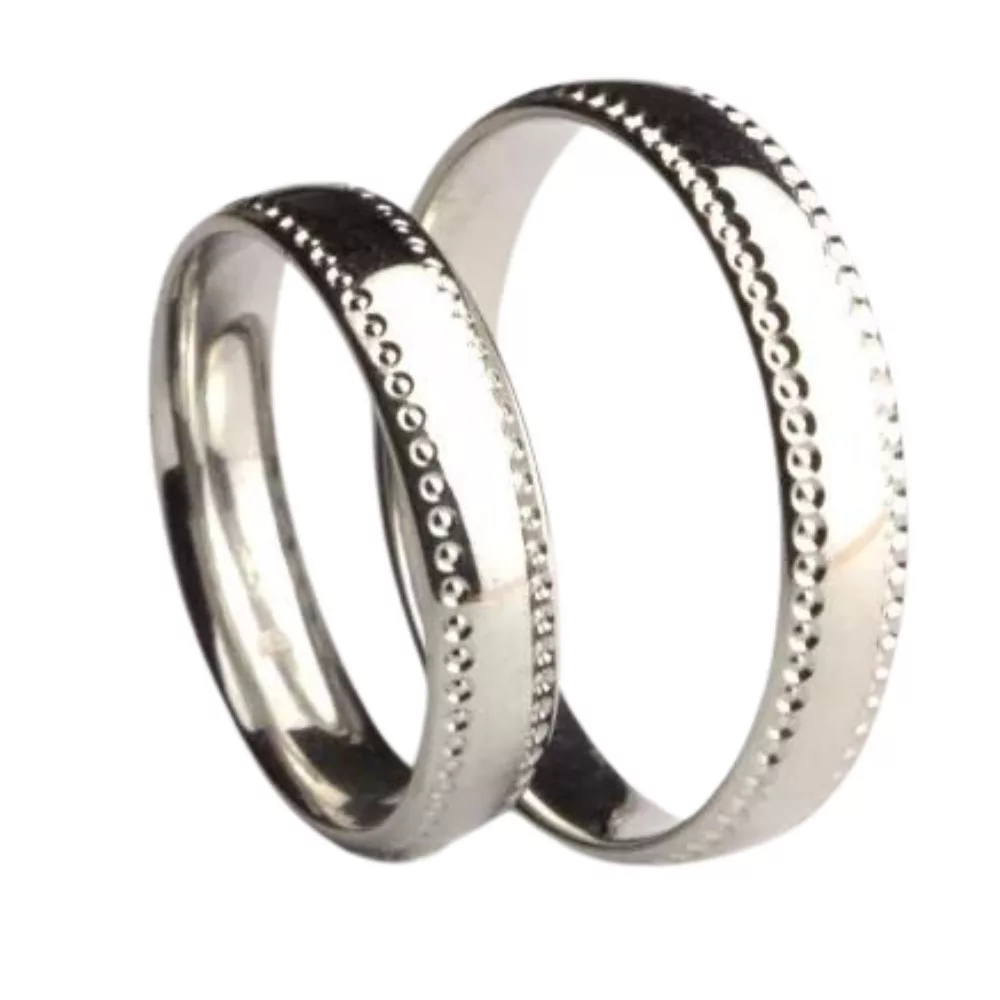 Our white gold wedding bands from Bruges, Amsterdam, and Utrecht have a clean, traditional design with a semi-convex, shiny exterior that has been made unique by wind erosion. The dotted engraving on the outer rim and the smooth surface in the middle evoke the canal system characteristic of these cities and the surrounding road network. The rings are identical in design, differing only in thickness.