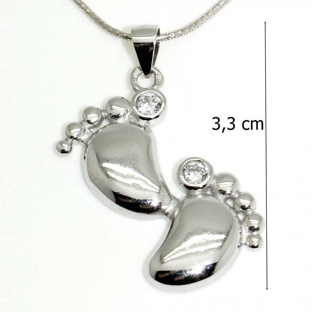 Charming silver engravable pendant in the shape of baby feet, with a zirconia stone on each big toe. Made of high-quality 925 Sterling Silver, which is not only durable but also hypoallergenic, making it ideal for those with sensitive skin. It makes an ideal gift for expectant mothers or mothers of young children, as the birth date or initials of the child can be engraved on the paw. (The chain is for illustration only and is not part of the jewelry.)