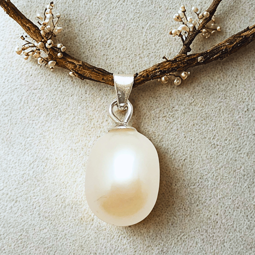 The freshwater elongated pearl silver pendant is a modern yet classic piece of jewelry that highlights the elegant shape of the elongated pearl. The 925 Sterling Silver rhodium-plated frame delicately reflects the silky sheen of the pearl, making it a subtle yet eye-catching accessory. Its minimalist design makes it easy to wear on both everyday and special occasions.