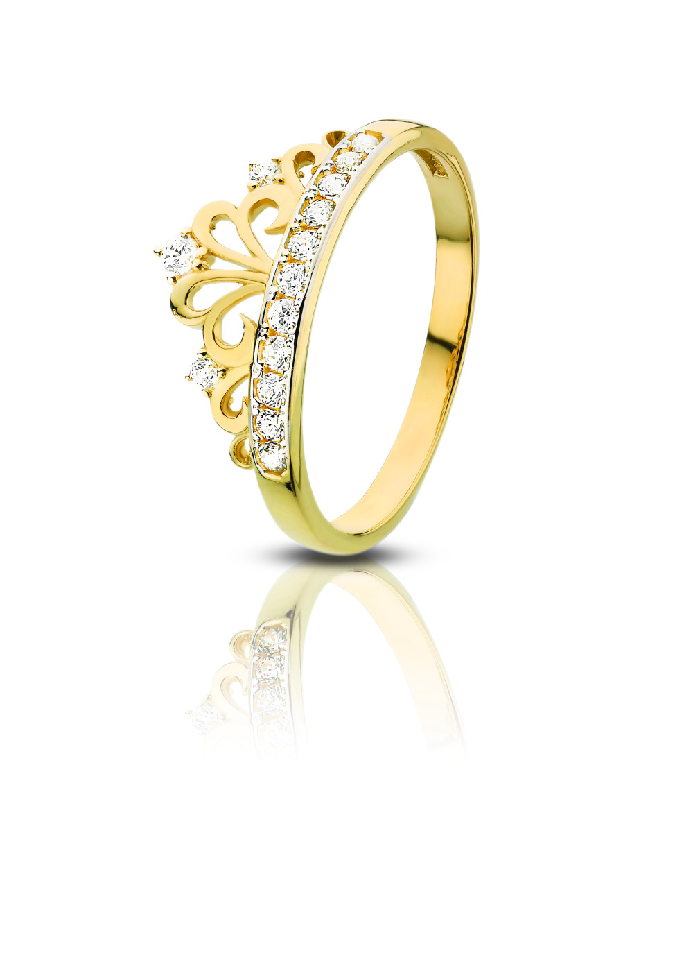 Wear a princess gold crown, but not on your head, on your finger. The shape of this beautiful 14-karat gold crown ring is reminiscent of a tiara, and the zirconia stones used for decoration only enhance its majestic elegance. A must-have piece for princesses, but also perfect as a Promise ring or Engagement ring.