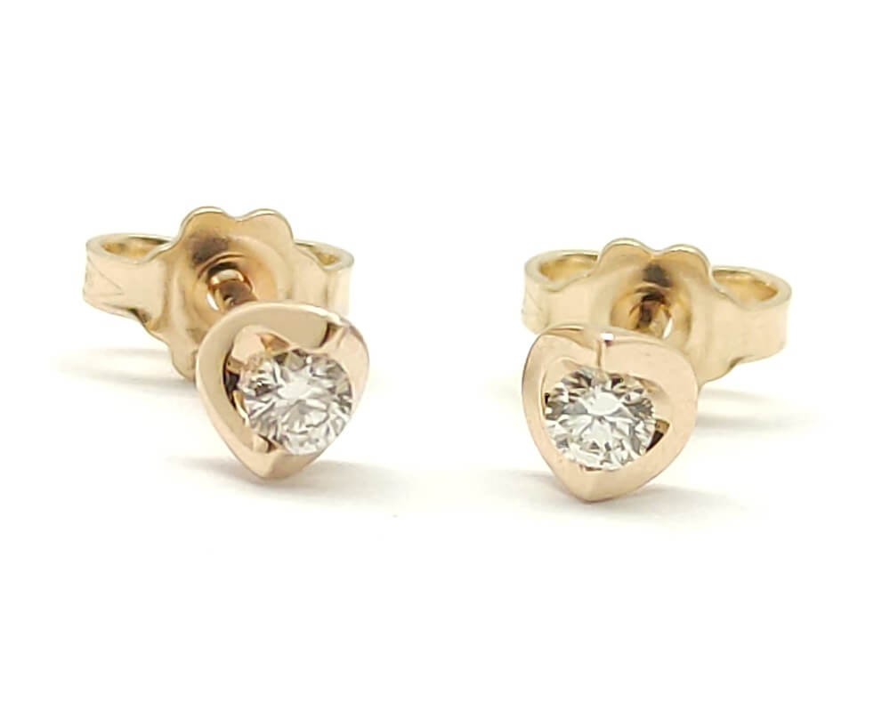Beautiful yellow gold stud earrings with diamond stones, featuring a 0.1 ct brilliant-cut diamond in the center. The diamond is gently surrounded by the unique shape of the gold earring, making this earring suitable for any occasion. It beautifully frames your face on its own, but can also wonderfully complement the sparkle of a similar diamond-studded gold pendant. The diamond-studded gold earring with a 0.1 ct brilliant-cut diamond is a discreetly elegant piece of jewelry that will enchant the wearer. See also the white gold version »
