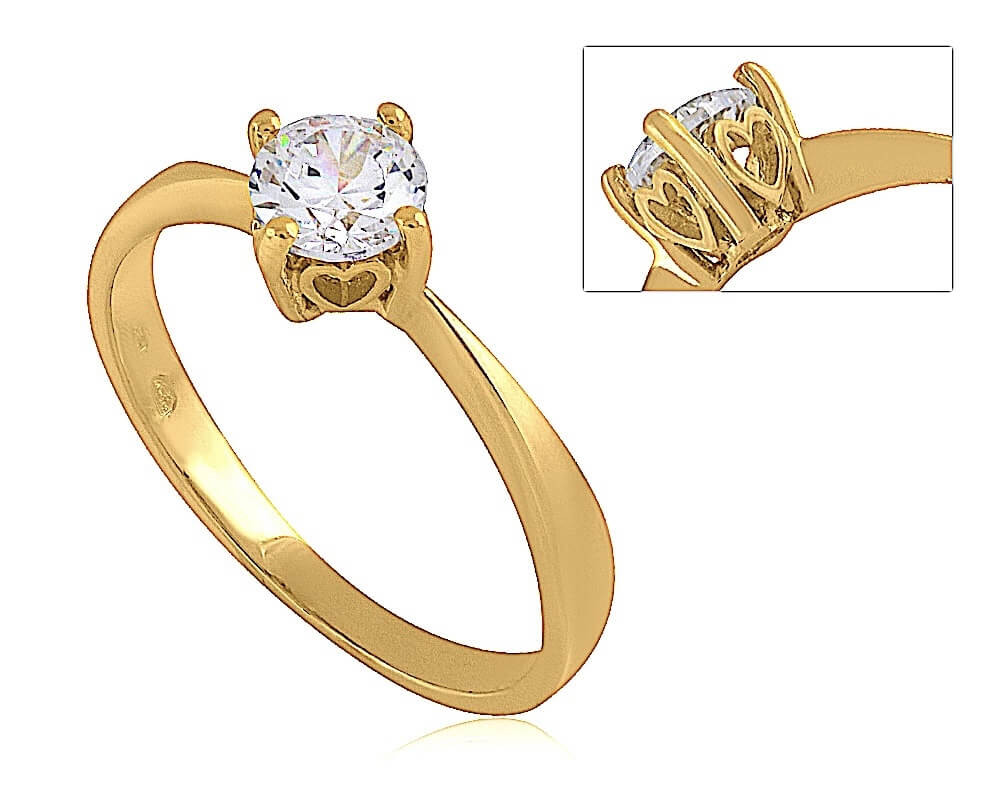 A promise ring from the heart, love in every detail - the Hearts solitaire gold ring is not only an elegant piece of jewelry, but also a subtle, romantic gesture. At its center, a round zirconia stone sparkles in a four-prong setting / claw setting, delicately protruding from the ring.