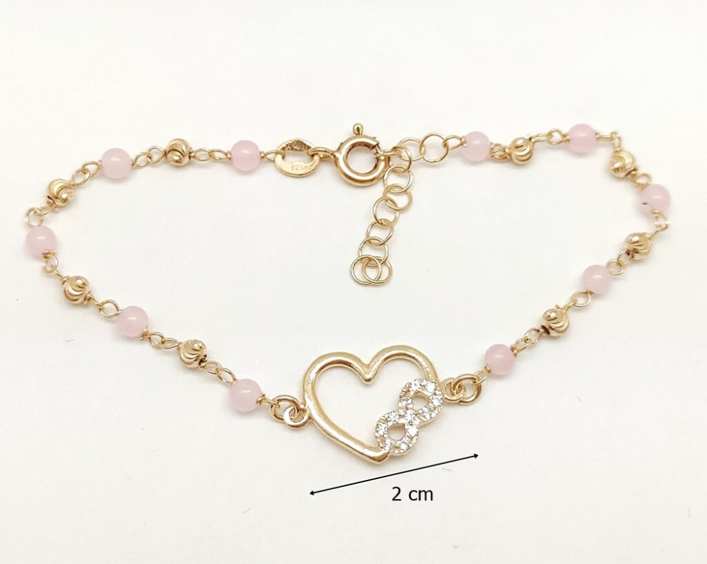 Make every day special with this gold-plated silver bracelet decorated with pink spheres, a heart and an infinity pendant! This bracelet is the perfect choice if you want to add a touch of color and elegance to your look. The 925 Sterling Silver base is embellished with gold-plated details for a sparkling look.