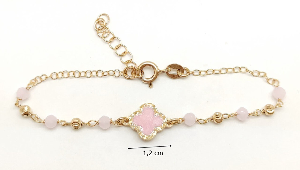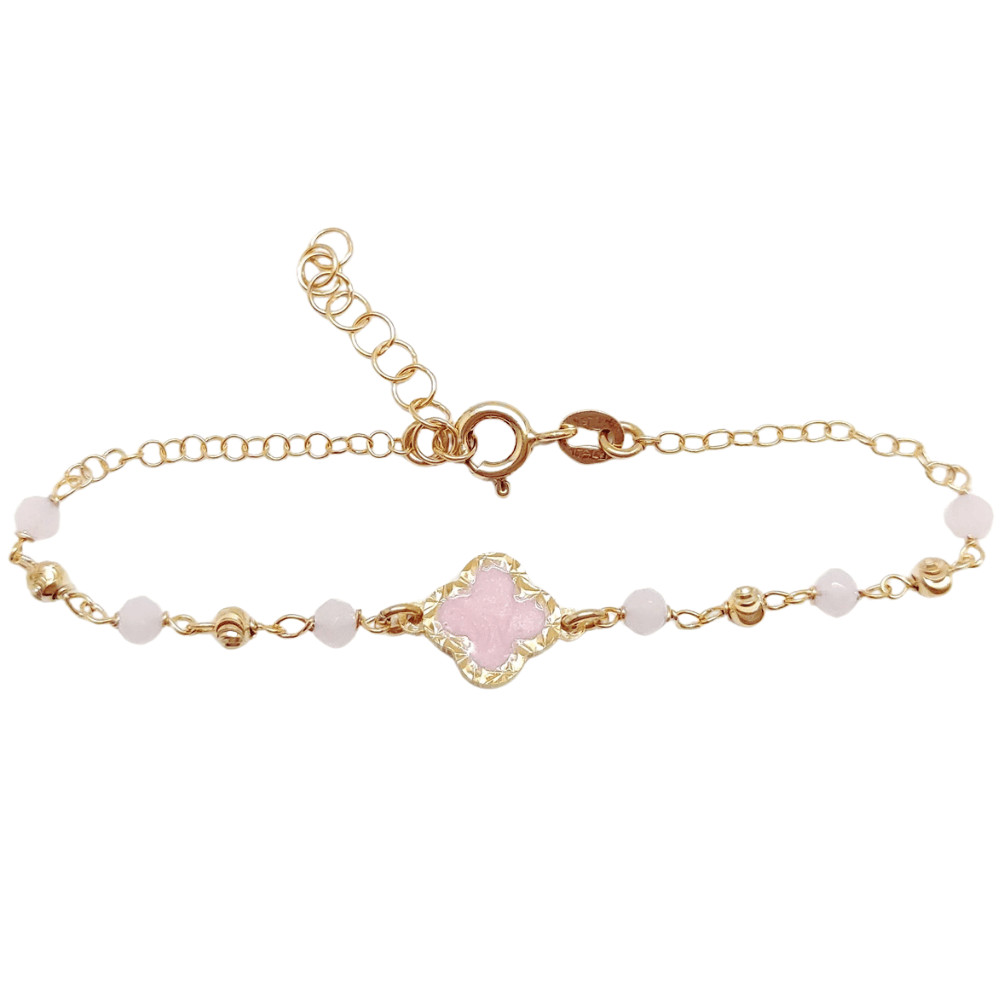 Enchant your surroundings with this gold-plated silver bracelet decorated with a pink four-leaf clover! This bracelet is the perfect accessory for romance and subtle elegance, while the lucky clover motif creates a feminine and playful effect. The 925 Sterling Silver base is embellished with gold-plated details for a sparkling look.