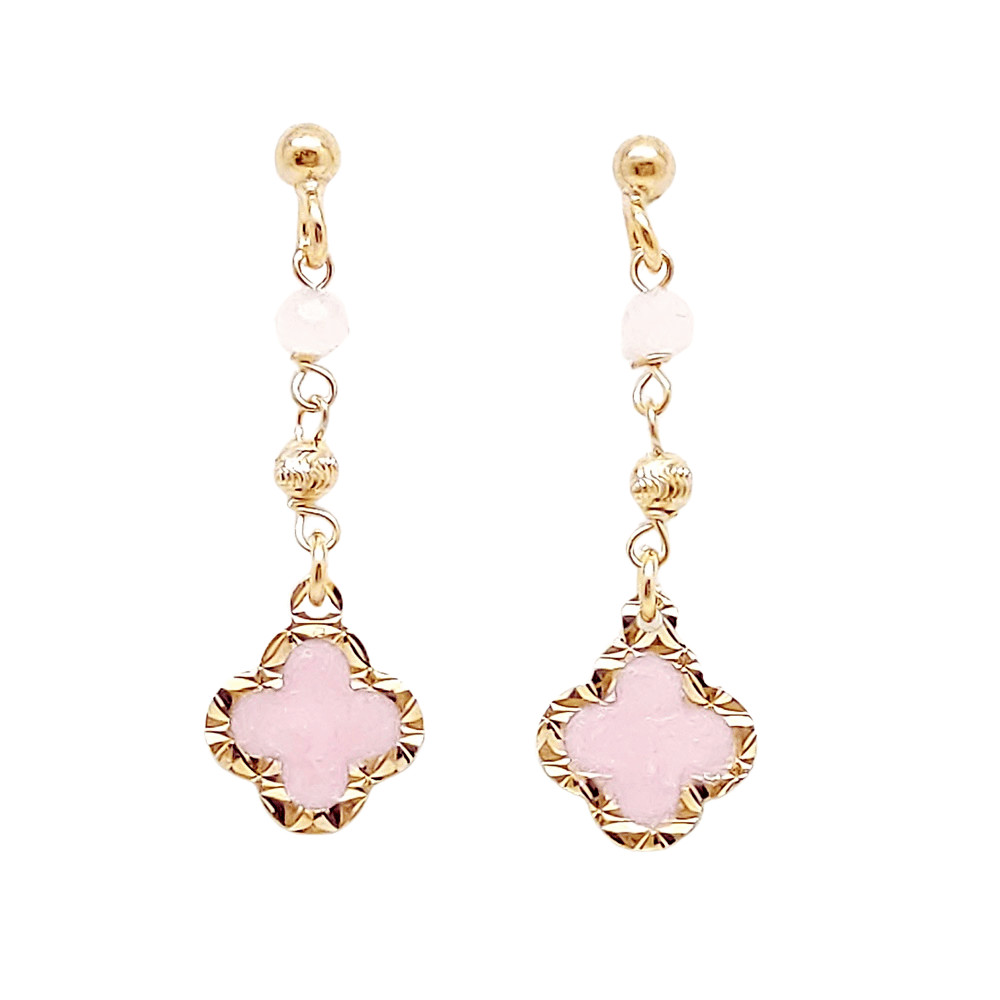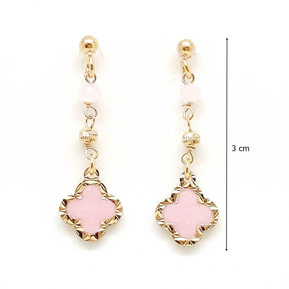 Make your look special with these gold-plated silver drop / dangle earrings decorated with a pink four-leaf clover! These earrings are the perfect accessory for romance and subtle elegance, while the pink lucky clover motif exudes playfulness and femininity. The 925 Sterling Silver base is embellished with gold-plated details for a sparkling look.