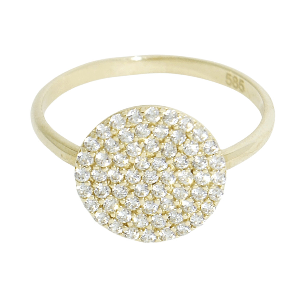 A dazzling yellow gold ring with a spectacular head encrusted with sparkling zirconia stones.