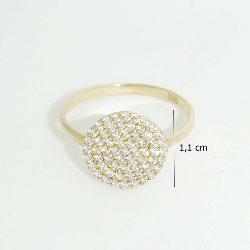 A dazzling yellow gold ring with a spectacular head set with sparkling zirconia stones. The jewelry shines in both sunlight and candlelight, making it a striking yet elegant piece for an occasion.