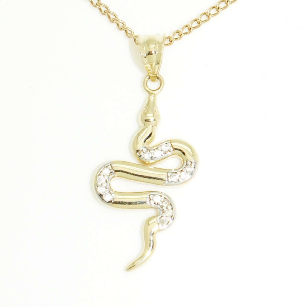 The unique animal pendant made of 14-karat gold, depicting a writhing snake and decorated with zirconia stones. The snake is often associated with ancient mythology and symbolic meanings, referring to rebirth, renewal, wisdom, but also symbolizing creative life force and healing. All of this comes together in this special Tekergő snake gold pendant, which can be a wonderful addition to your look.