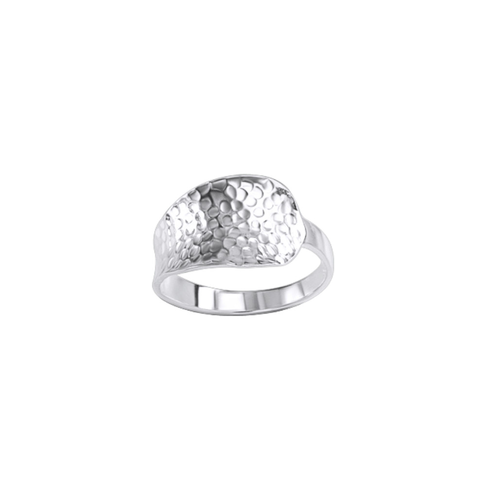 This hammered style, asymmetrical silver ring perfectly combines a rustic look with modern design. Made of 925 Sterling Silver, its slightly irregular lines and matte, textured surface give it a unique character. The asymmetry lends the jewelry a sense of dynamism and playfulness, while the Hammered style evokes the timeless beauty of craftsmanship.