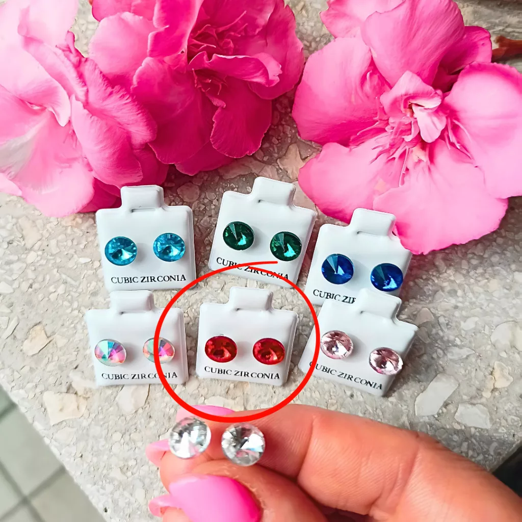 A fülbevalót egy ragyogó, 8 mm átmérőjű cirkónia kő díszíti, mely elérhető fehér, rózsaszín, türkizkék, sötétkék, zöld, piros, fekete és színjátszós (Aurora Borealis) változatban. A klasszikus kör alak finom csillogást ad az arcnak, anélkül hogy túlzás lenne - pont ideális egy nyári ruhához, farmeres hétköznaphoz vagy épp a strandon a fürdőruhád mellé.