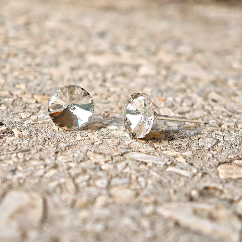 The earrings are adorned with a sparkling 8 mm diameter zirconia stone, available in white, pink, turquoise, dark blue, green, red, black and iridescent (Aurora Borealis) versions. The classic round shape adds a subtle sparkle to the face without being over the top - perfect for a summer dress, everyday jeans, or even with your swimsuit at the beach.