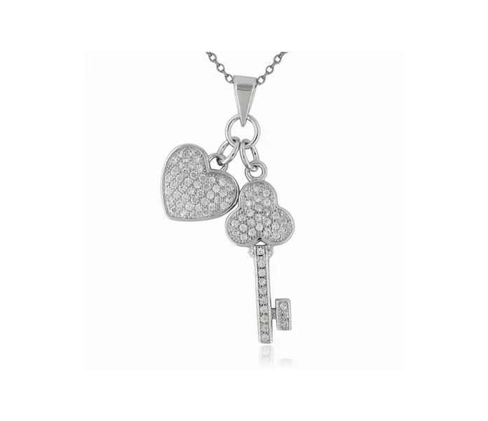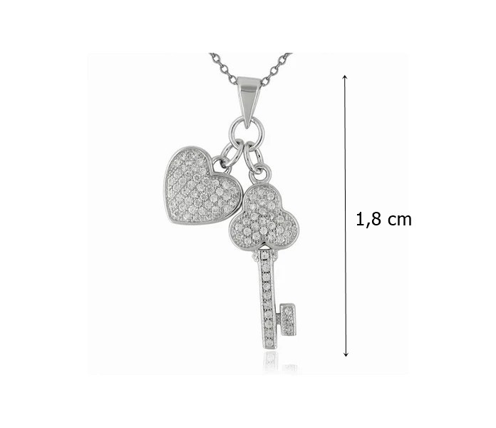 The key and heart silver pendant with zirconia is an elegant and timeless piece of jewelry that can be the perfect accessory for your everyday outfits. It is made of high-quality sterling silver, which ensures the pendant's durability and shine. The key symbolizes the opening of doors and new opportunities, while the heart symbolizes love, so wearing it can have a special meaning for you.