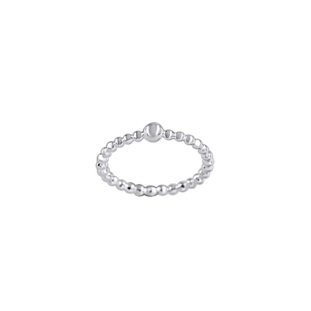 The minimalist silver bead ring celebrates the perfection of simplicity. The thin, clean ring band is encircled with tiny beads, creating a clean and structured look. Made from 925 Sterling Silver, it is not only aesthetically pleasing but also of impeccable quality.