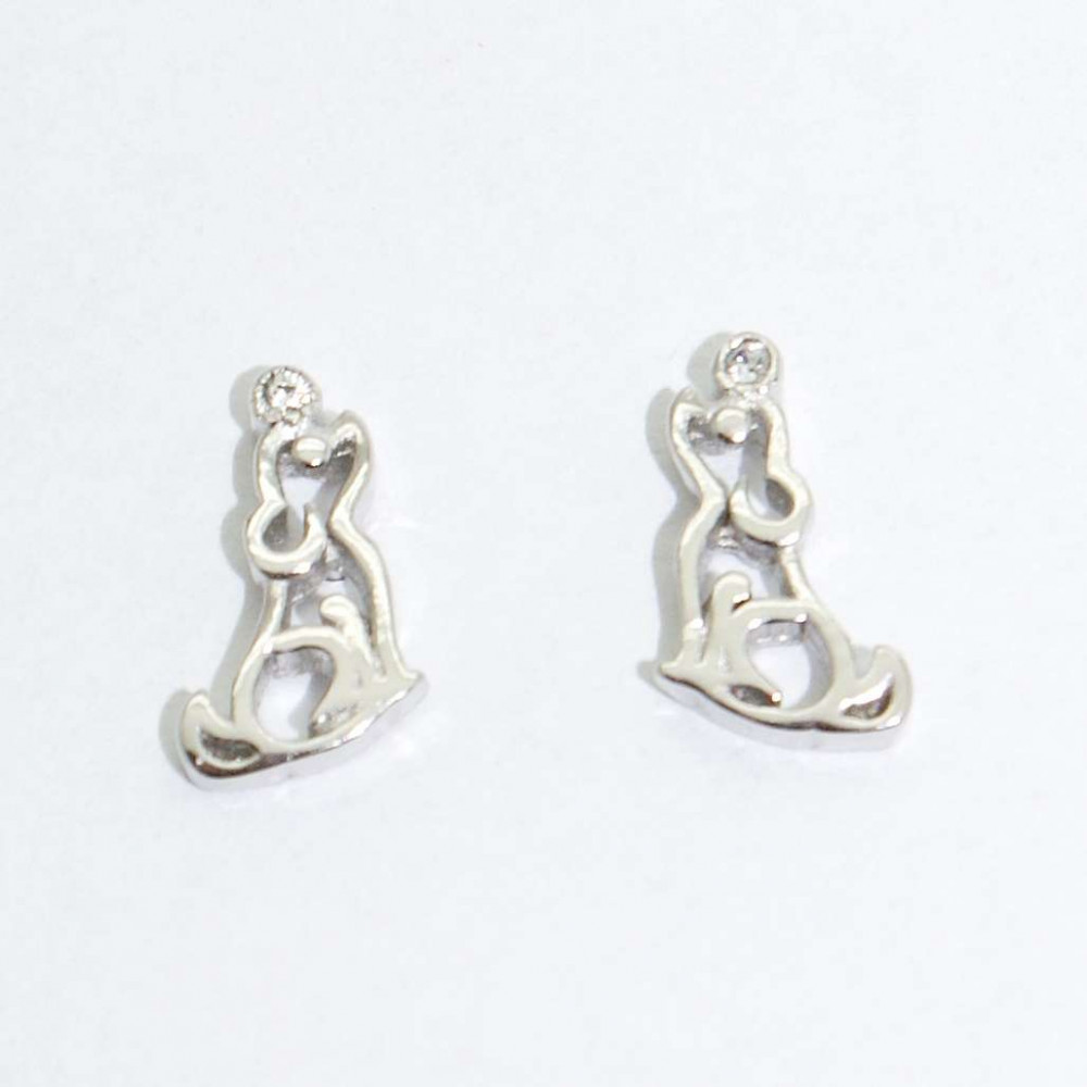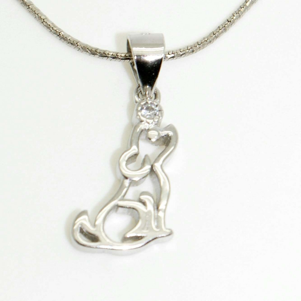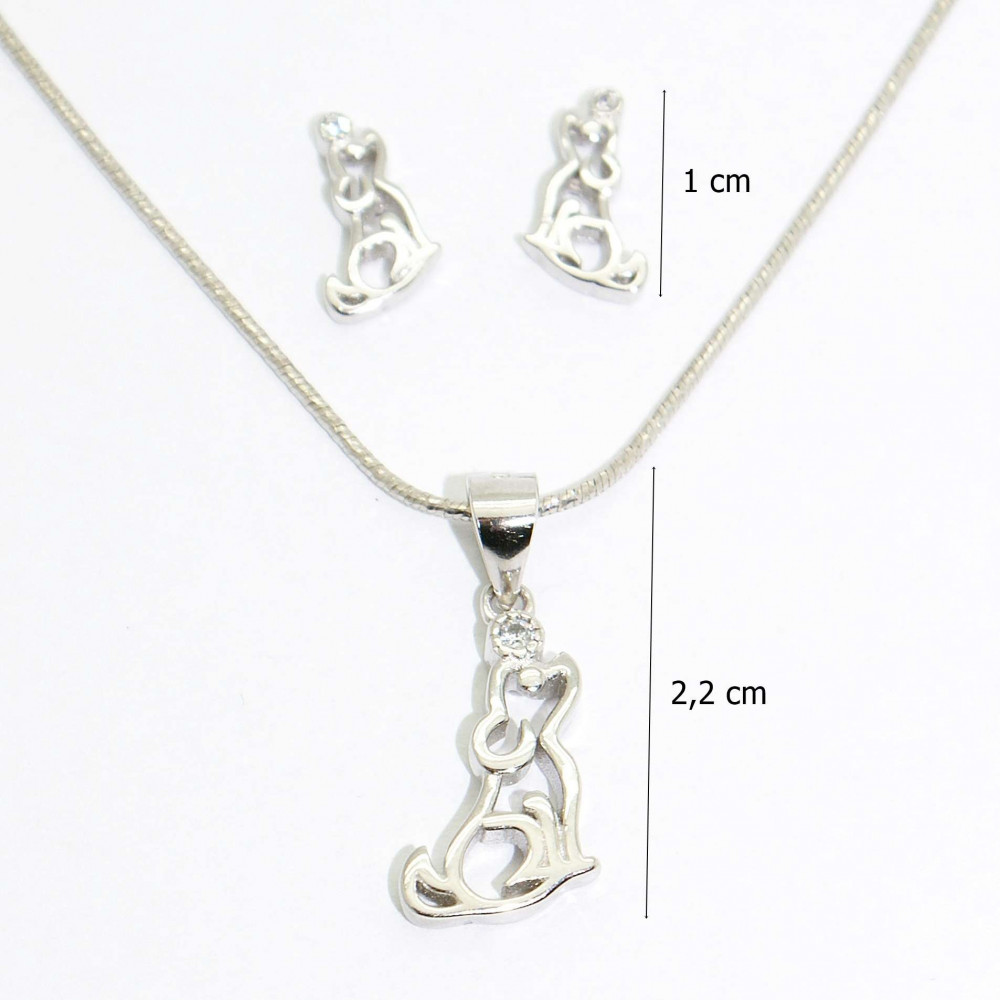 Rhodium-plated silver dog animal jewelry set made of 925 Sterling Silver, decorated with zirconia stones.