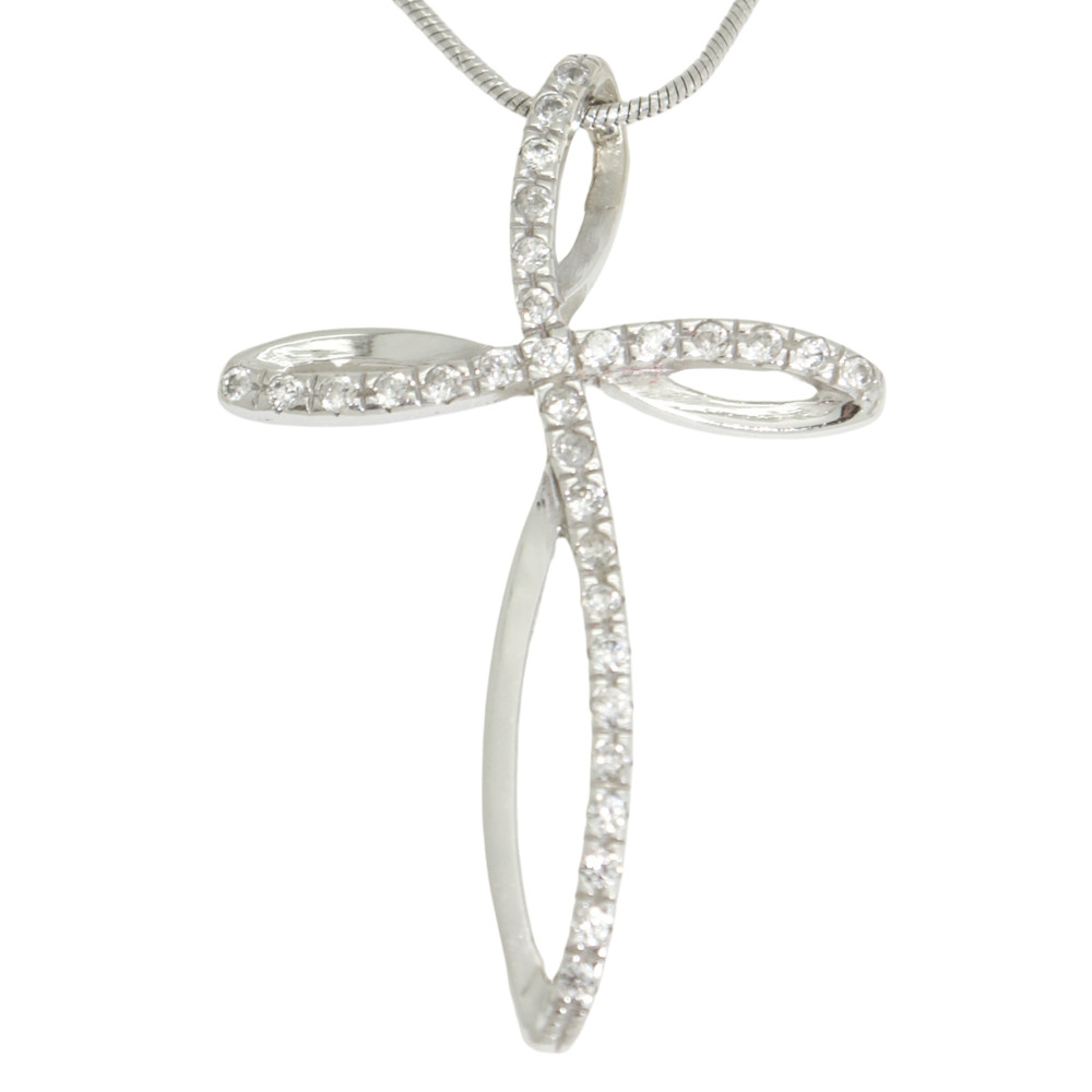 The beautifully sparkling, cross-shaped 14-karat white gold pendant is decorated with zirconia stones. What makes it special is that the cross is 3D with a twisted motif, and its arms are studded with tiny zirconia stones. You can wear the Pure Faith white gold pendant all the time; it is a subtle yet elegant piece of jewelry.