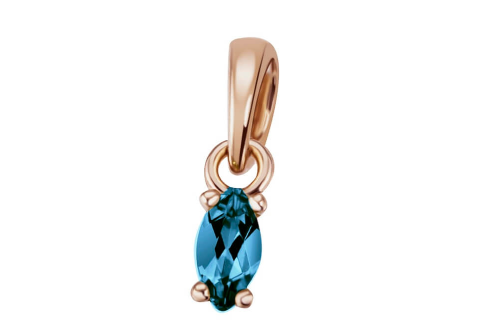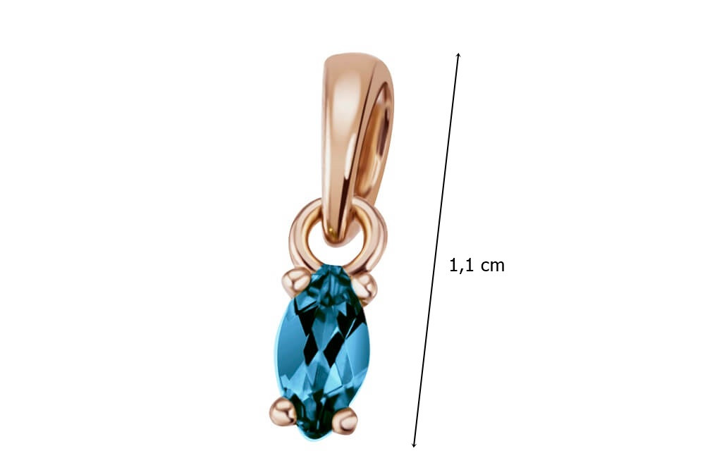 A beautiful 14-karat rose gold pendant with an elongated blue topaz gemstone sparkling in the center. Red gold, also known as rose gold, is particularly well suited to the skin color and tone of autumnal types. Wear this London topaz rose gold pendant with a similar rose gold chain to highlight its unique beauty.