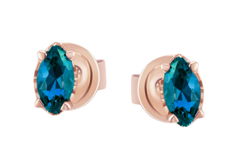 Rose gold stud earrings with London topaz stones