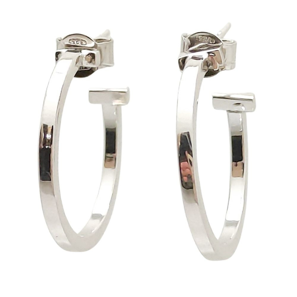 This shiny stud earring is a modern take on the classic hoop earring. It is made of 925 Sterling Silver, which is hypoallergenic, and has a rhodium coating to ensure it retains its shine. The clean, without stones / no stones design makes it a universal piece that goes with any style.