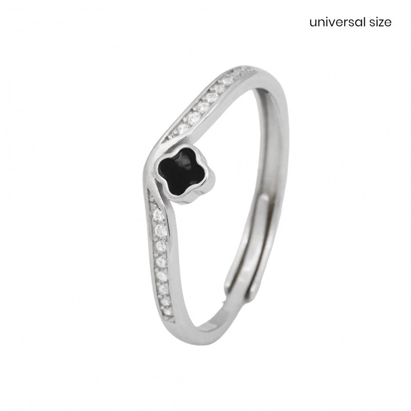This adjustable ring is the perfect combination of luck and elegance. The 925 Sterling Silver base is decorated with a black four-leaf clover, which gives it a special and unique look. The rhodium plating protects the ring from tarnishing while ensuring a lasting shine. Thanks to its adjustable size (53-60), it fits comfortably on any finger.