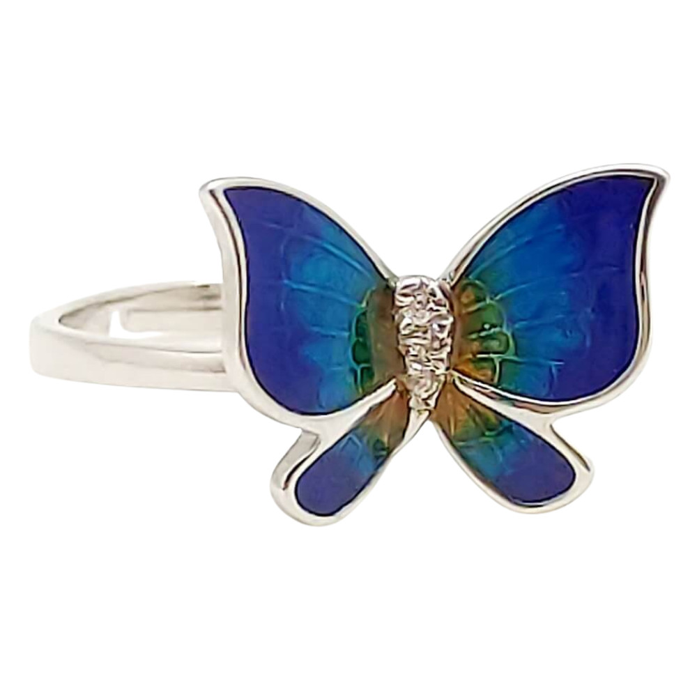 Bring a little nature and color into your everyday life with this silver butterfly animal ring, decorated with a charming blue butterfly.