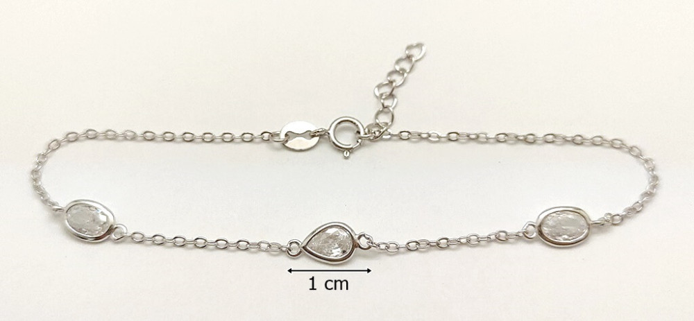 Be elegant and sophisticated with this silver bracelet adorned with three beautiful zirconia stones! Made of 925 Sterling Silver, this bracelet's delicate and elegant design makes it perfect for everyday wear or special occasions. The bracelet is adorned with three sparkling zirconia stones that shine beautifully and highlight the elegance of the jewelry.