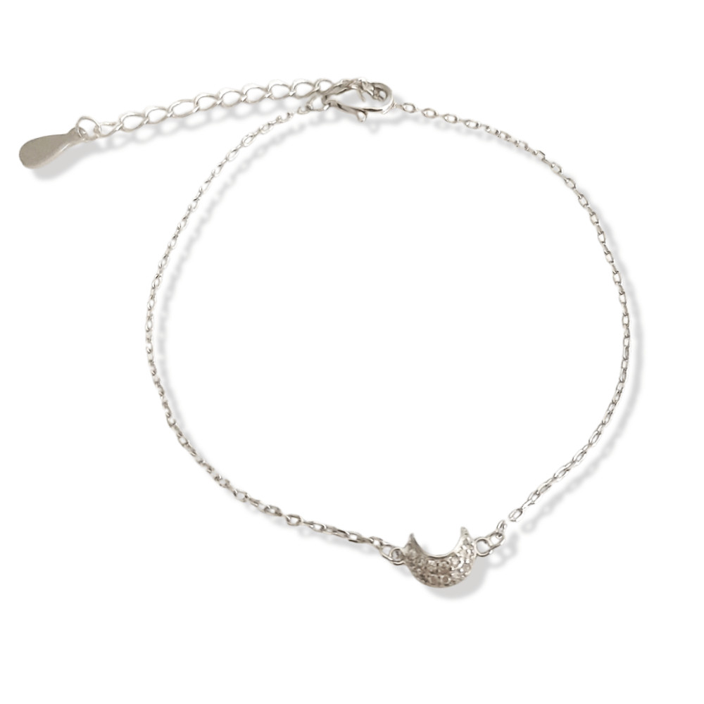 This silver moon charm bracelet is the ideal choice for those who love subtle meanings in their jewelry. Clean yet distinctive, it goes well with both Everyday wear and casual looks. The slim chain fits discreetly around the wrist, making it comfortable and airy to wear, even all day long.