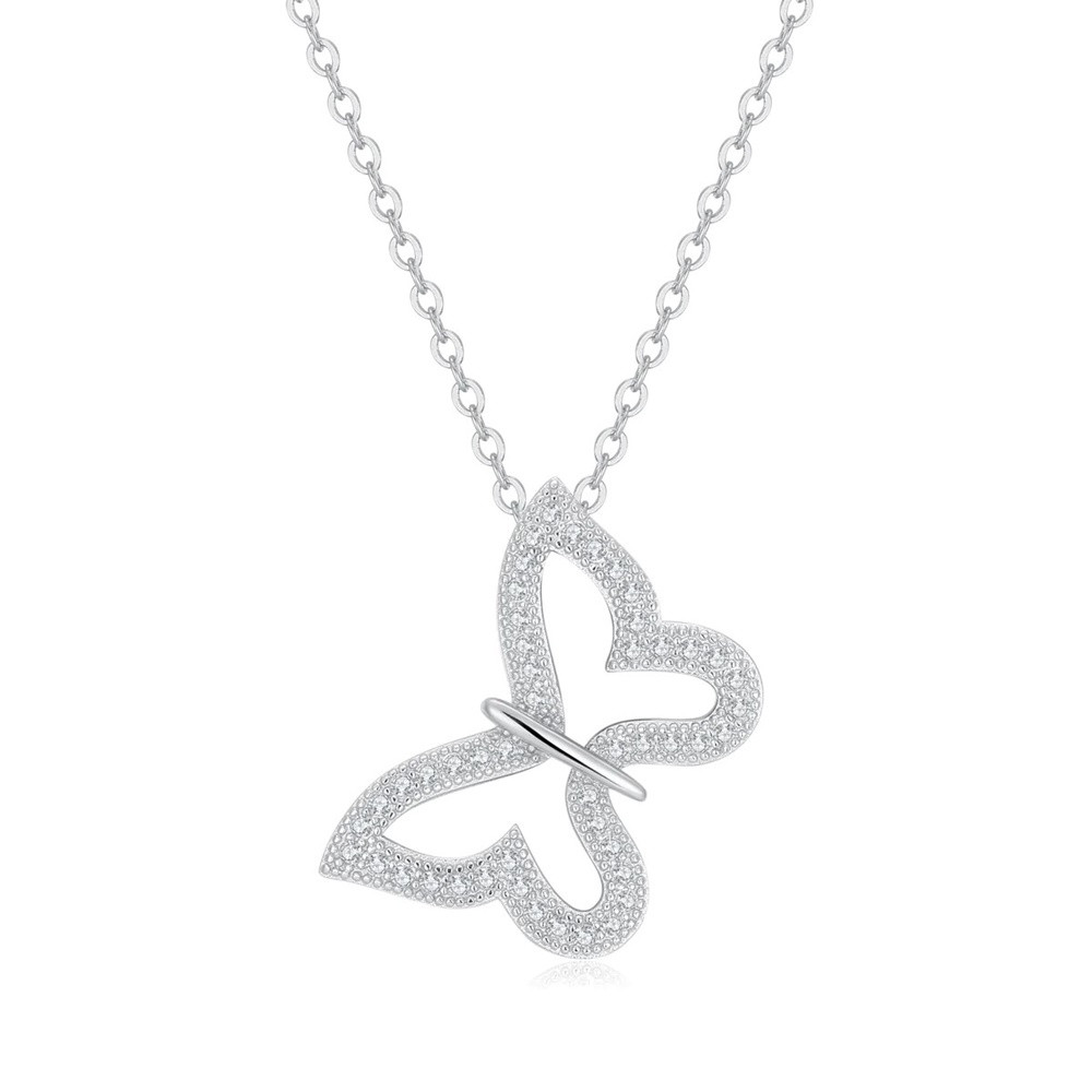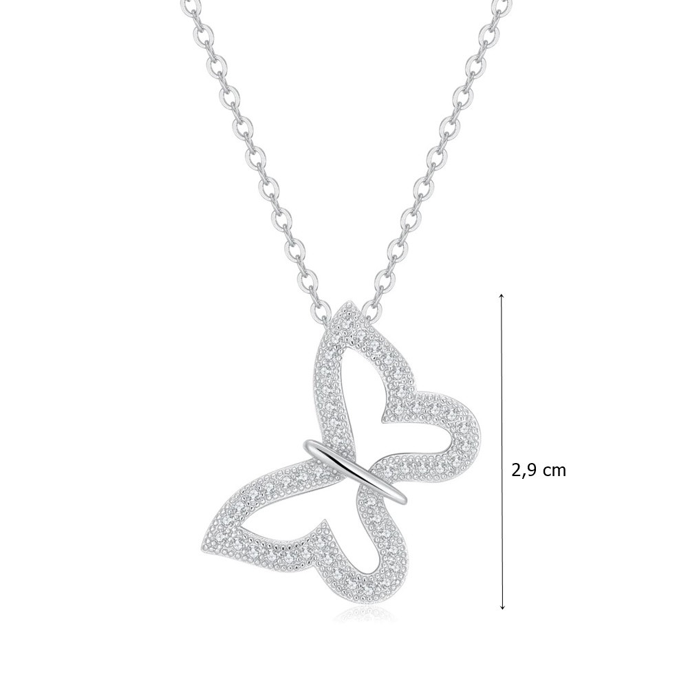 Charming silver butterfly pendant decorated with zirconia stones. The butterfly is a symbol of freedom, so it is recommended for all free spirits. Made of high-quality 925 Sterling Silver, which is not only durable but also hypoallergenic, making it ideal for those with sensitive skin. (Chain for illustration only and not included in the jewelry.)