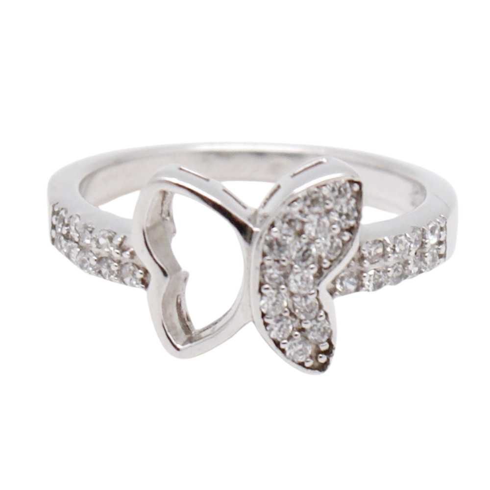 Silver butterfly ring with white and zirconia wings