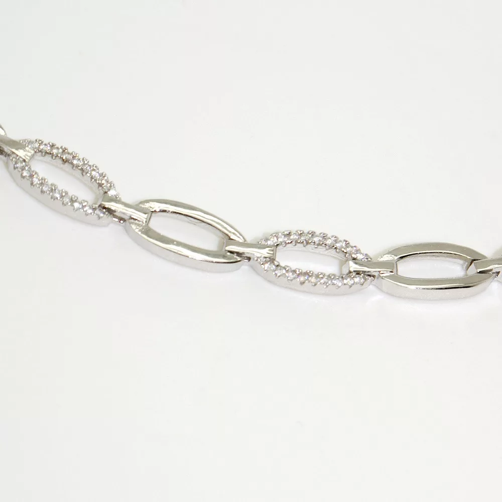Silver chain bracelet with zirconia stones