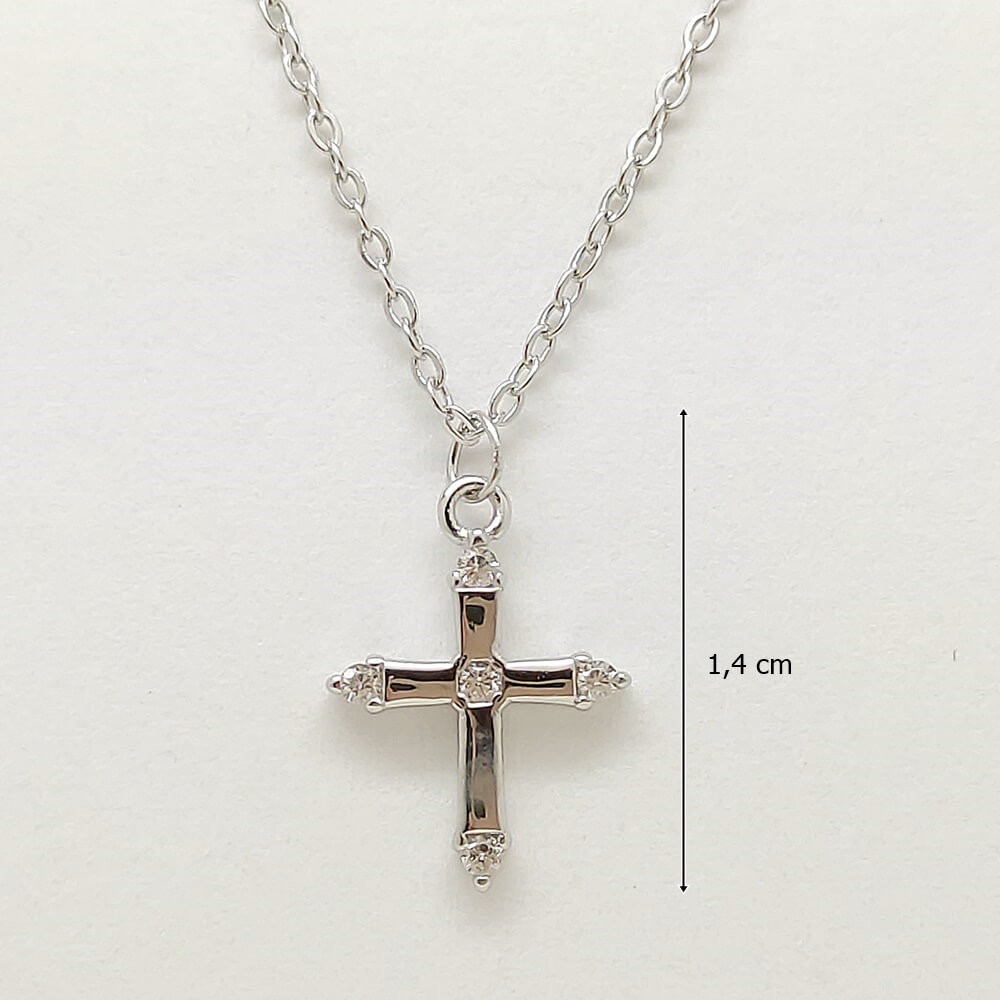 The chain is easily adjustable between 42 cm and 45 cm in length, so it fits comfortably on any neck. The delicate details of the tiny cross pendant and the shine of the silver give it a classic and elegant look. Wear this silver chain on its own to highlight your religious beliefs, or combine it with other jewelry for an even more stunning effect.