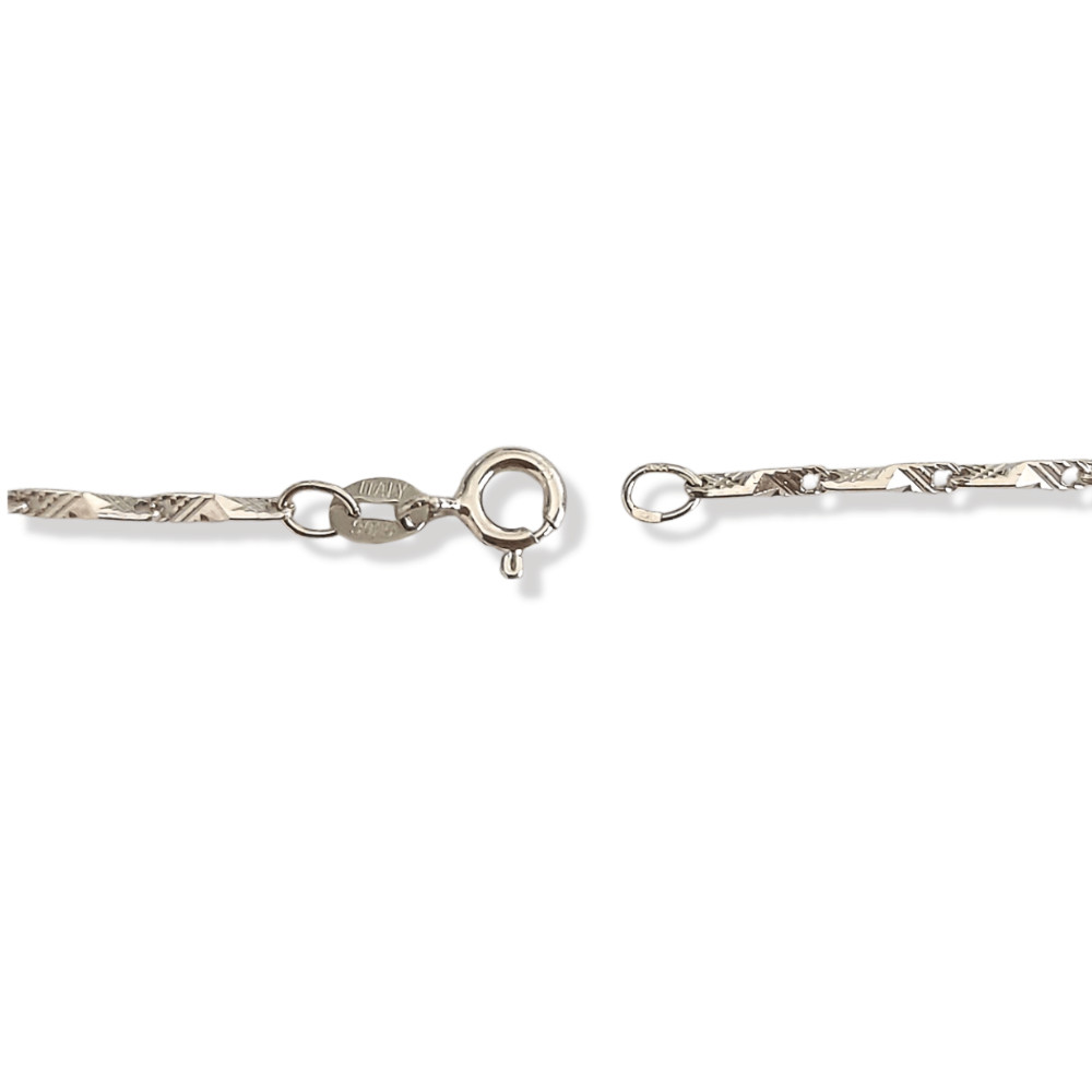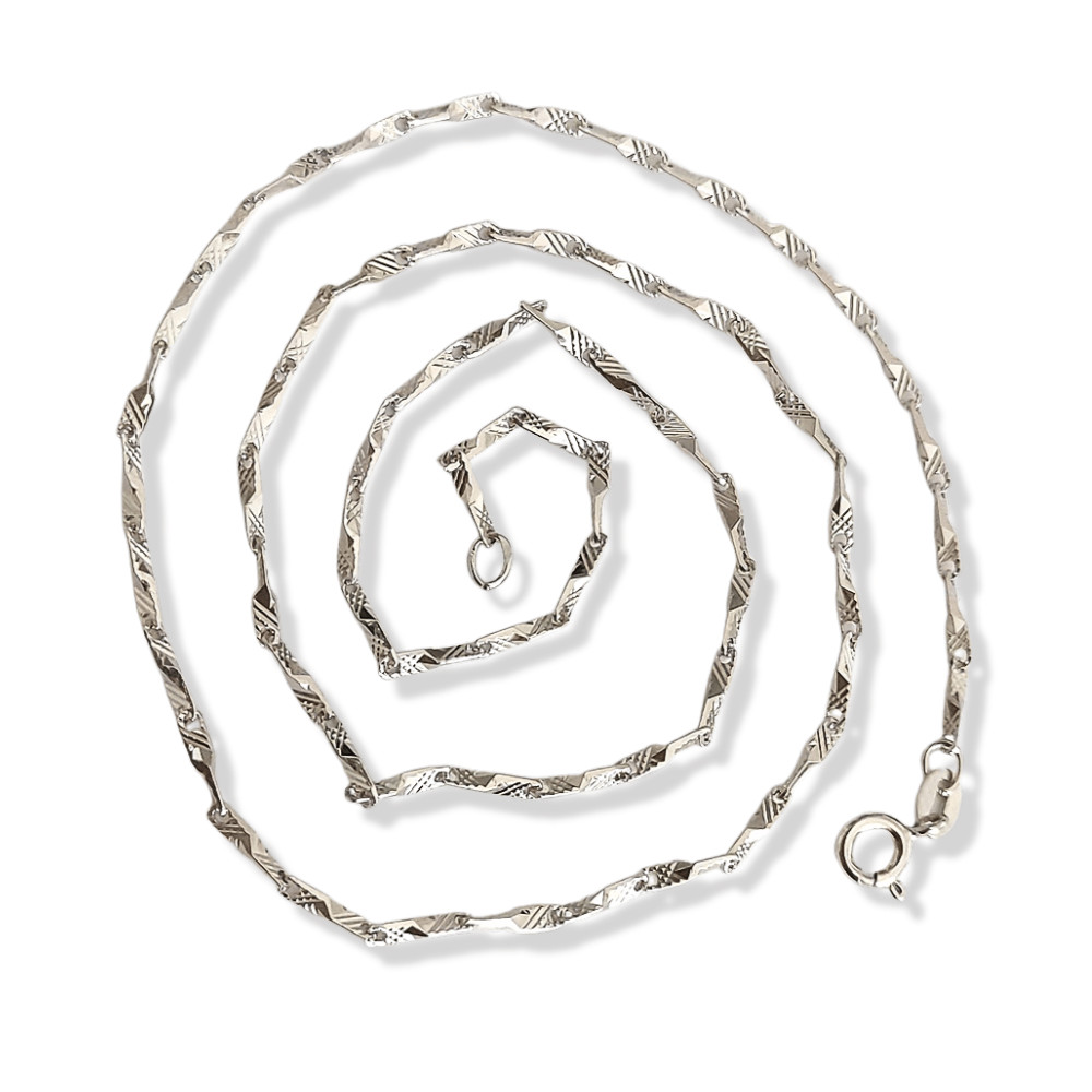 A finely crafted, 45 cm long sterling silver chain with special engraved eyes that create an elegant refraction of light.