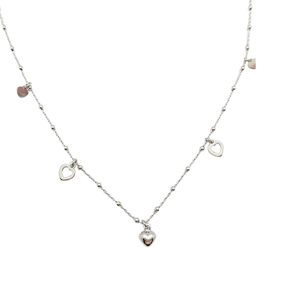 Style tip: Pair this chain with a simple, single-color top to let the heart charms take center stage.>Style tip: Pair this necklace with a simple, solid-color top to let the heart charms take center stage. To complete the look, choose heart-shaped earrings or a heart-motif bracelet to create harmony among your jewelry.