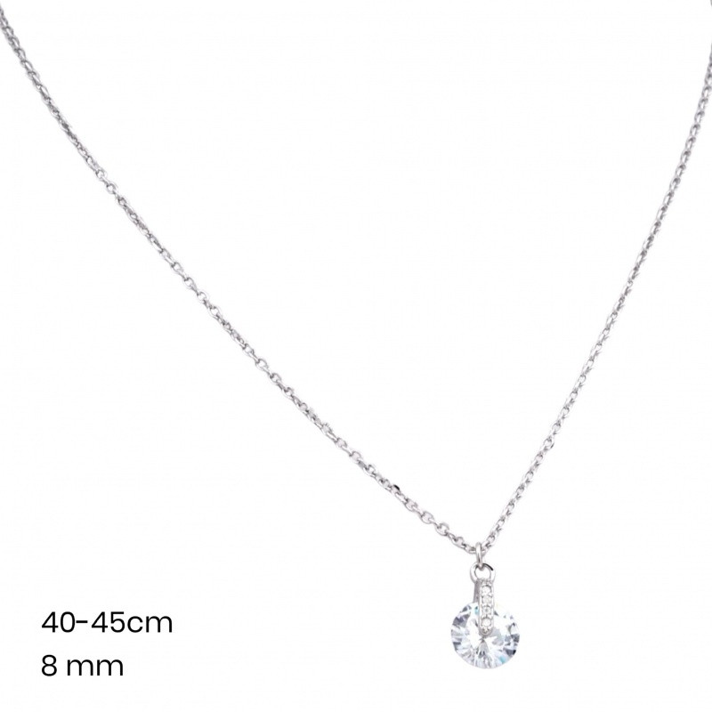 The silver chain with large zirconia pendant is the perfect embodiment of luxury and elegance. The 925 purity, rhodium-plated Sterling Silver chain gives its wearer a radiant glow, while the large zirconia stone in the center attracts attention with its magnificent sparkle. The zirconia stone perfectly imitates the sparkle of a diamond, making this chain an elegant accessory for any casual or formal outfit.