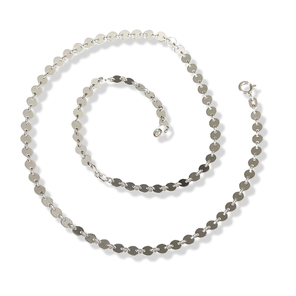 With its 45 cm length and discreet sparkle, this silver chain with small links is the perfect basic piece for a modern jewelry collection. The delicate, shiny links follow the curve of the neck rhythmically, providing a subtle yet vibrant sparkle with every movement. The chain is made of 925 Sterling Silver, making it not only eye-catching, but also skin-friendly and durable.