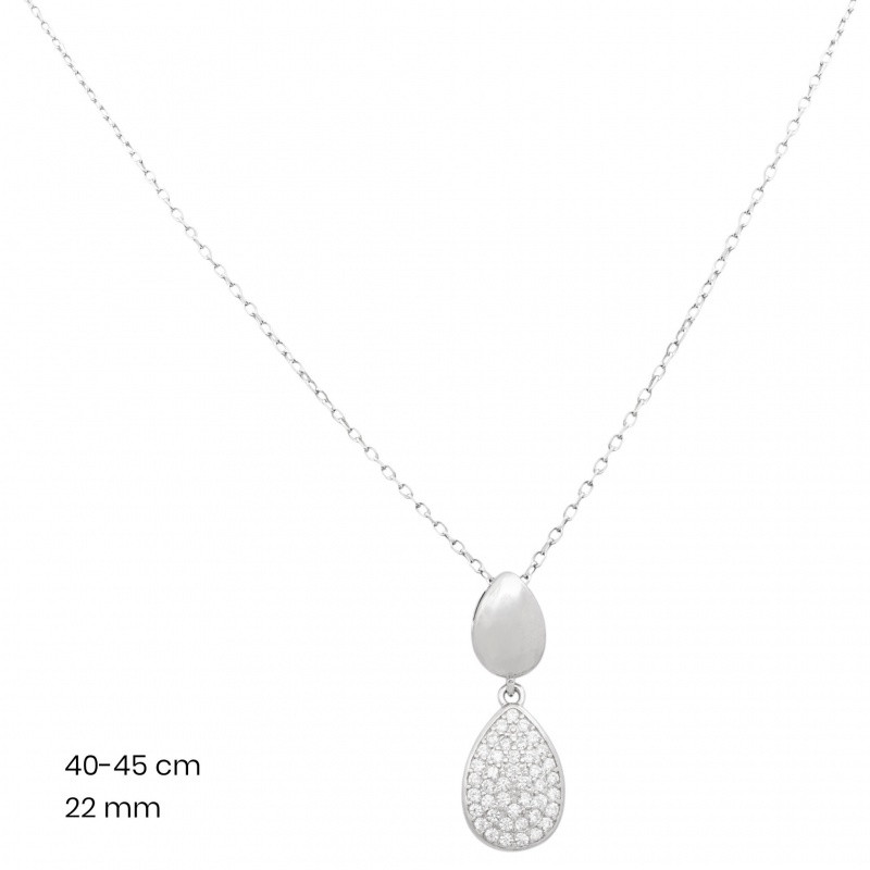 The silver chain with sparkling pendant represents timeless elegance. Made of 925 Sterling Silver, the rhodium-plated chain fits delicately around the neck, made truly spectacular by a sparkling teardrop-shaped zirconia.