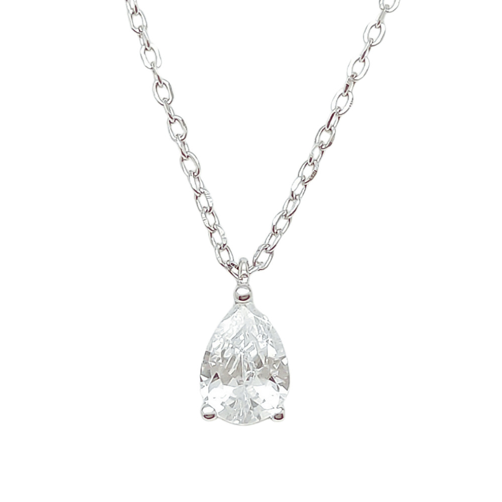Make your look special and dazzling with this silver chain adorned with a stunning teardrop-shaped zirconia pendant. This 925 sterling silver chain perfectly combines modern design and classic elegance. The drop-shaped pendant and the sparkling zirconia stone inside it ensure a stunning look.