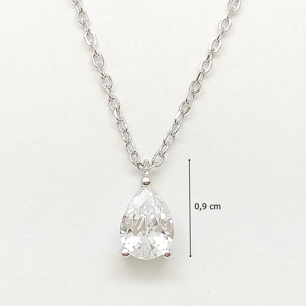 The chain length can be easily adjusted between 42 cm and 46 cm, so it fits comfortably on any neck. The delicate details of the teardrop-shaped zirconia pendant and the sparkle of the silver give it an elegant and sophisticated look that goes with any outfit and is perfect as bridal or wedding jewelry. Wear this silver necklace on its own to highlight your unique style, or combine it with other jewelry for an even more stunning effect.