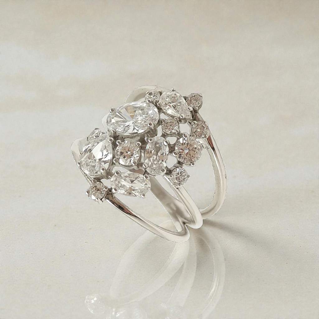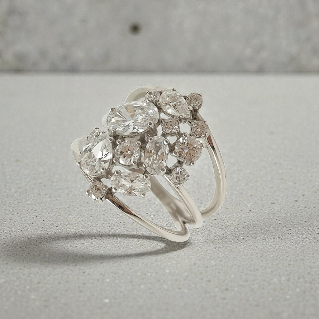 This ring is no ordinary accessory: it will be the centerpiece of your outfit at a night party or an elegant reception. The precisely cut stones reflect light with every movement, guaranteeing to attract attention.