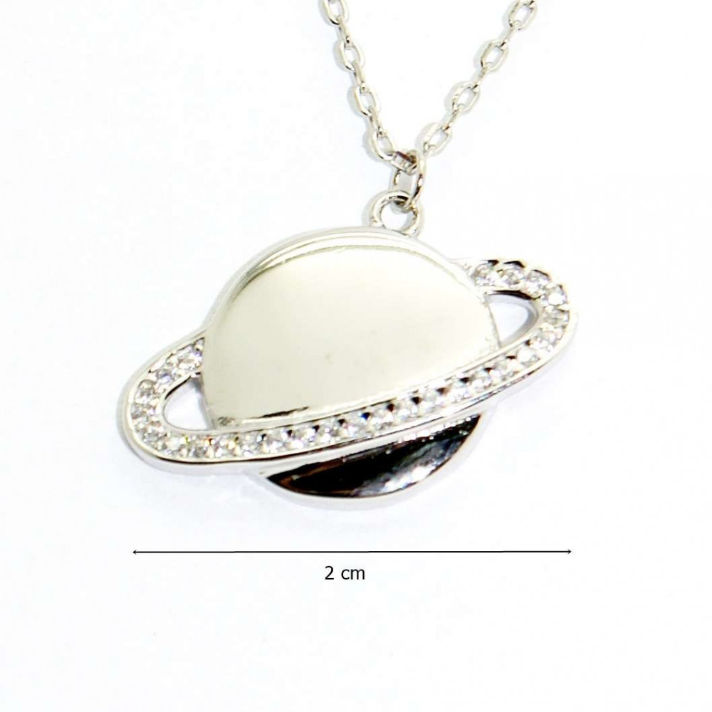 Bring the magic of the stars into your everyday life with this silver collier necklace decorated with Saturn's rings. This necklace, made of 925 sterling silver, is not only stylish, but also a symbol of the mysterious beauty of space and the universe. The delicate details of Saturn's rings, the zirconia stones and the sparkle of silver ensure a unique and stunning look.