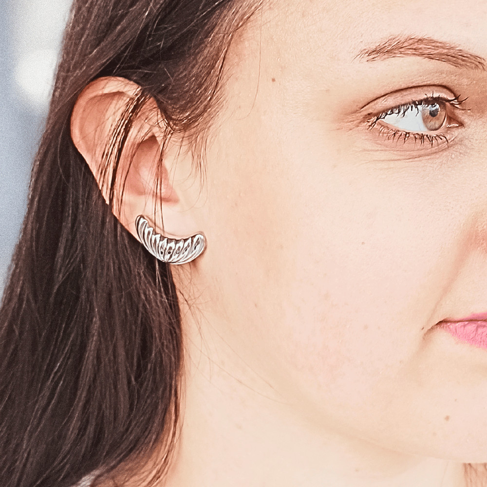 With their unique, playful design, these silver croissant earrings are the perfect blend of elegance and creativity. Made from 925 Sterling Silver, the delicately curved design is inspired by French pastries and is guaranteed to attract attention. The rhodium-plated coating ensures a lasting shine, while the hypoallergenic material means that even those with sensitive skin can wear them with confidence.