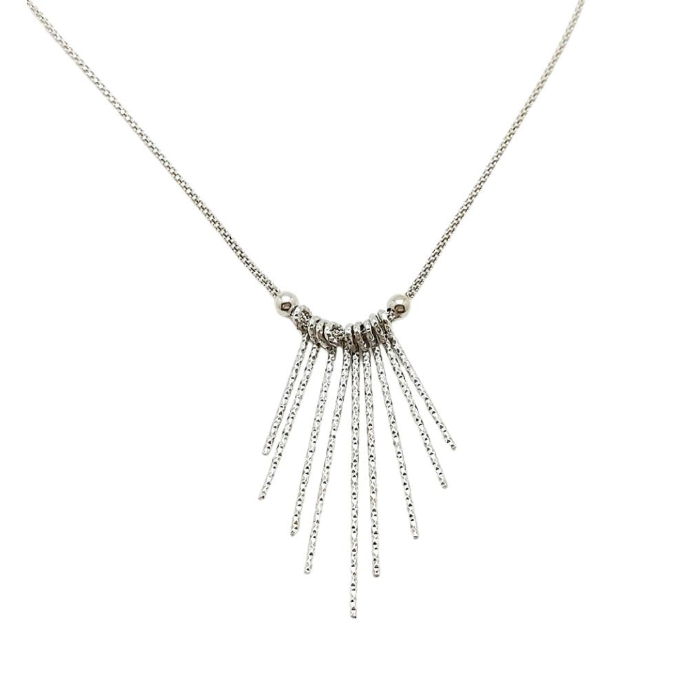 Decorated with delicate hanging silver threads, this necklace will easily become the center of attention, no matter what occasion you wear it for. It is the perfect choice for weddings, anniversaries, or any special event. At the same time, it can be combined perfectly with everyday wear, such as a simple top and jeans.