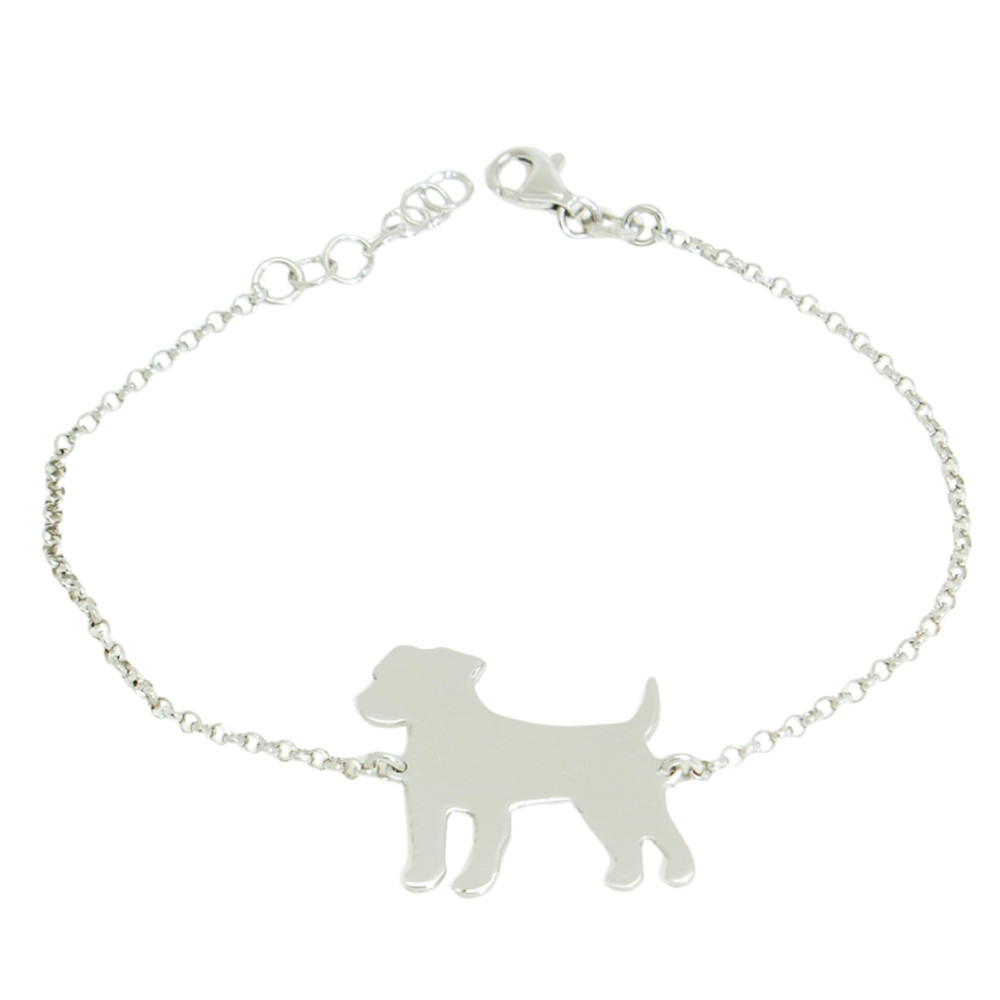 Silver dog animal bracelet with terrier charm, for dog lovers.
