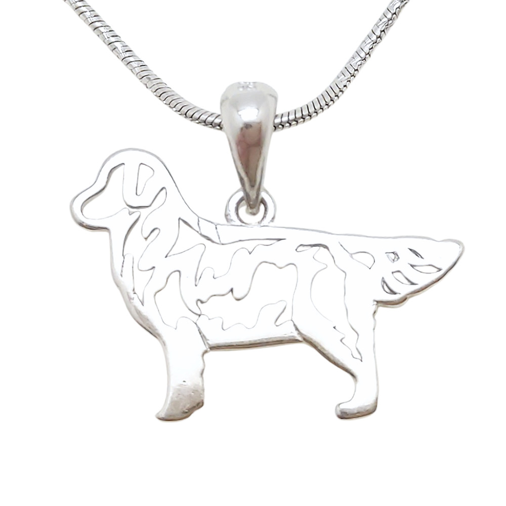 Openwork silver dog pendant depicting a Golden Retriever, for dog lovers.