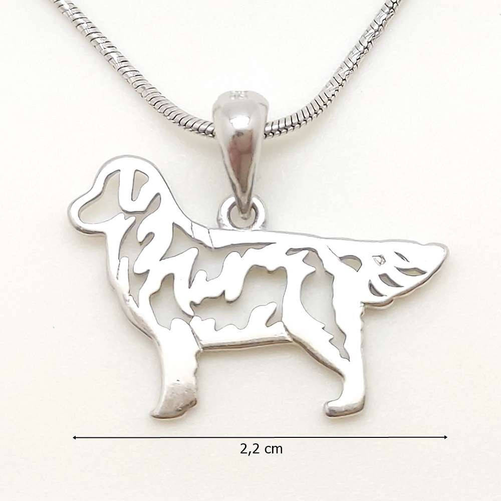 Openwork silver dog pendant depicting a Golden Retriever, for dog lovers. Made of high-quality 925 Sterling Silver, which is not only durable but also hypoallergenic, making it ideal for those with sensitive skin. (The chain is for illustration only and is not part of the jewelry.)