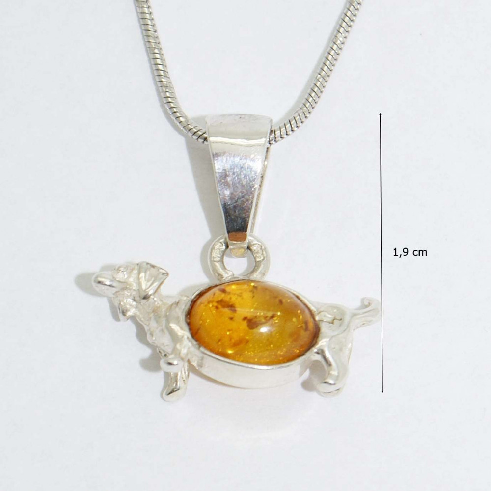 Silver animal dog pendant, for dog lovers. The dachshund's belly is decorated with brown amber. Made of high-quality 925 Sterling Silver, which is not only durable but also hypoallergenic, making it ideal for those with sensitive skin. (Chain for illustration only and not included.)