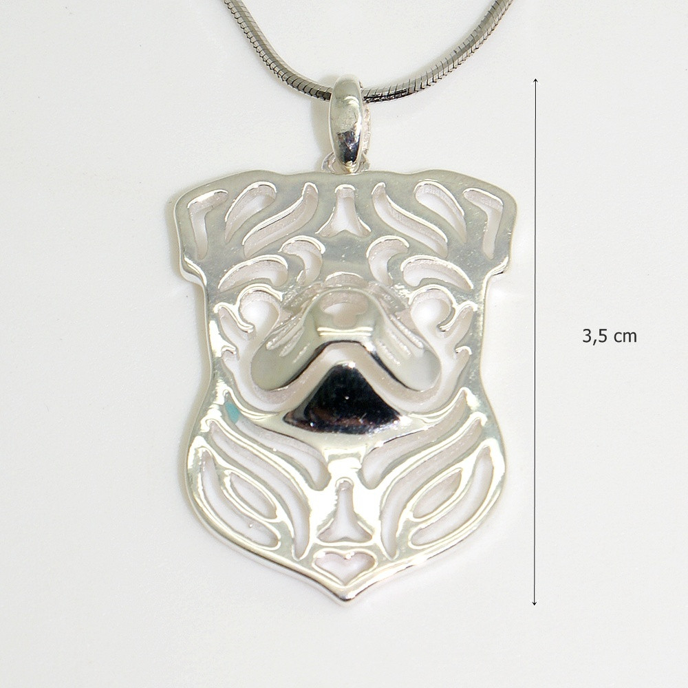 Openwork silver dog pendant with a Rottweiler head, for dog lovers. Made of high-quality 925 Sterling Silver, which is not only durable but also hypoallergenic, making it ideal for those with sensitive skin. (Chain for illustration only and not included in the jewelry.)
