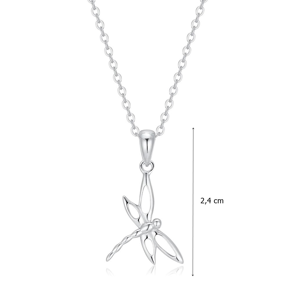 Airy silver dragonfly animal pendant decorated with sparkling zirconia stones. Made from high-quality 925 Sterling Silver, which is not only durable but also hypoallergenic, making it ideal for those with sensitive skin. (The chain is for illustration only and is not part of the jewelry.) Delivered in a decorative box.