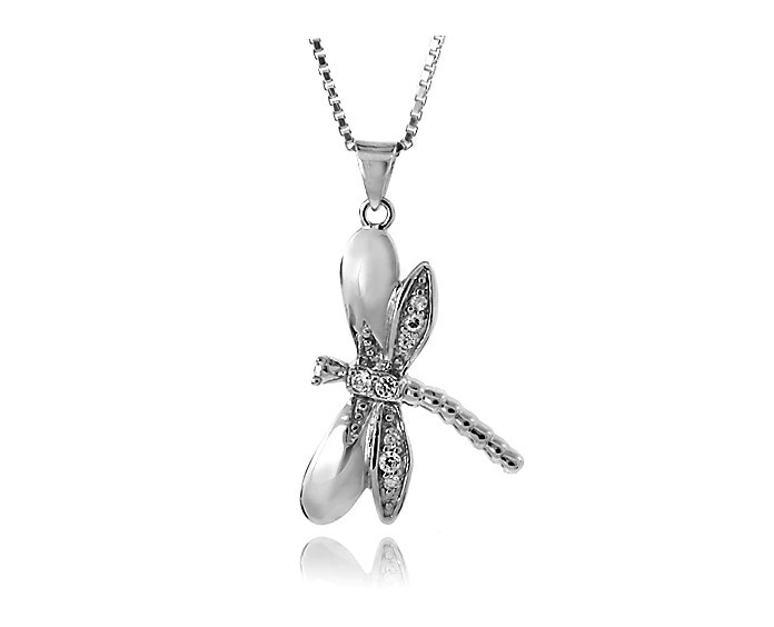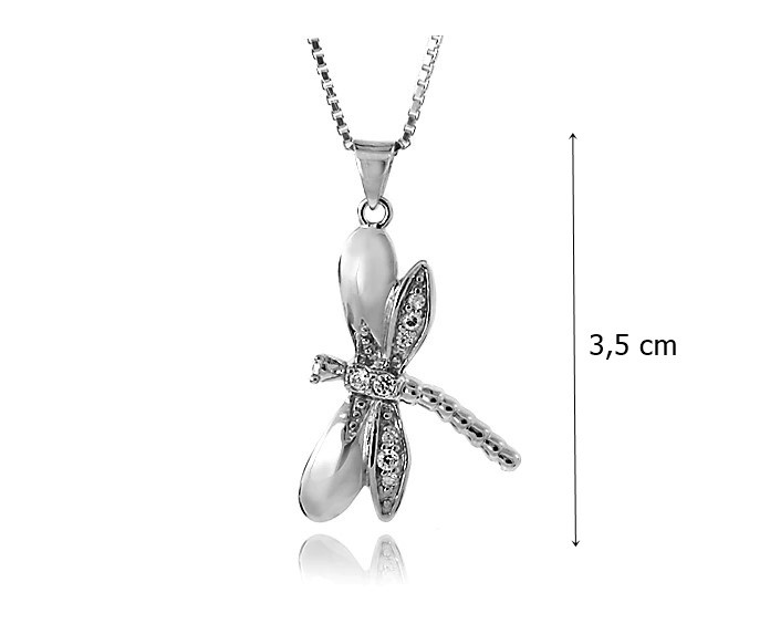 Shiny silver dragonfly animal pendant decorated with sparkling zirconia stones. Made from high-quality 925 Sterling Silver, which is not only durable but also hypoallergenic, making it ideal for those with sensitive skin. (The chain is for illustration only and is not part of the jewelry.) Delivered in a decorative box.