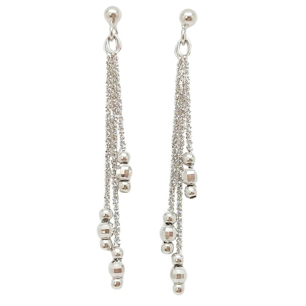 These multi-strand silver drop / dangle earrings add a unique movement and elegance to any look. The delicately crafted strands hang gracefully, creating a dynamic effect when worn. The purity and durability of sterling silver ensure that these earrings will remain shiny and stylish every time you wear them. The multitude of strands particularly highlights the playful and modern character of the earrings, which can brighten up any outfit.